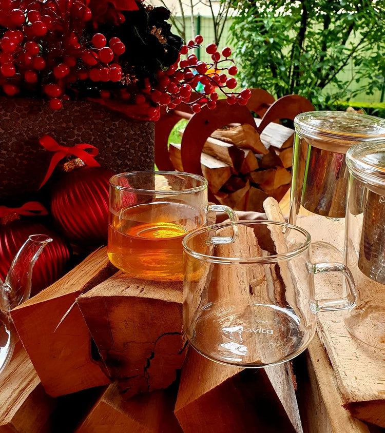 Teiere, infusiere e tazze interamente in vetro borosilicato per resistere agli shock termici, una collezione che può essere lavata interamente in lavastoviglie.